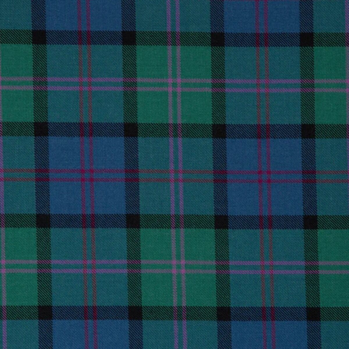 The MacThomas Ancient Tartan features soft shades of green, blue, and brown, with subtle black and white lines. Its muted, weathered appearance reflects Scotland's rugged landscapes and historical charm.